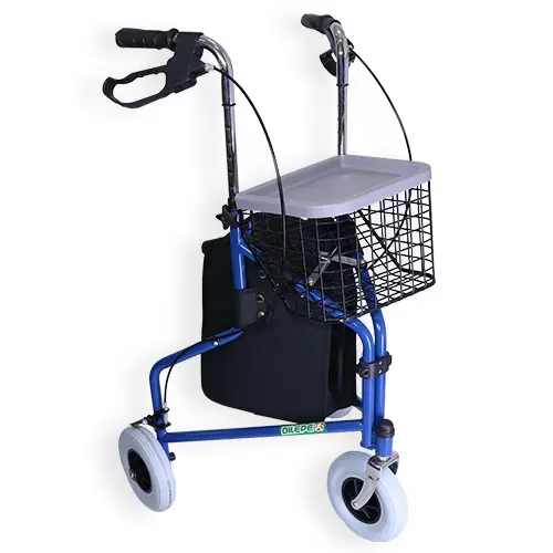 O Andador 3 Rodas Dobrável é um dispositivo auxiliar de marcha, feito em 100% alumínio.Vem com manete de freios e suporta até 100 kg.